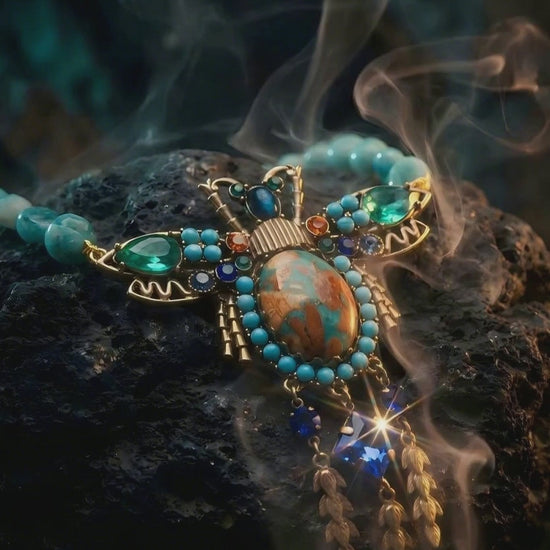 Vintage Bronze Bee Pendant Necklace with Natural Stone - iBrilliance